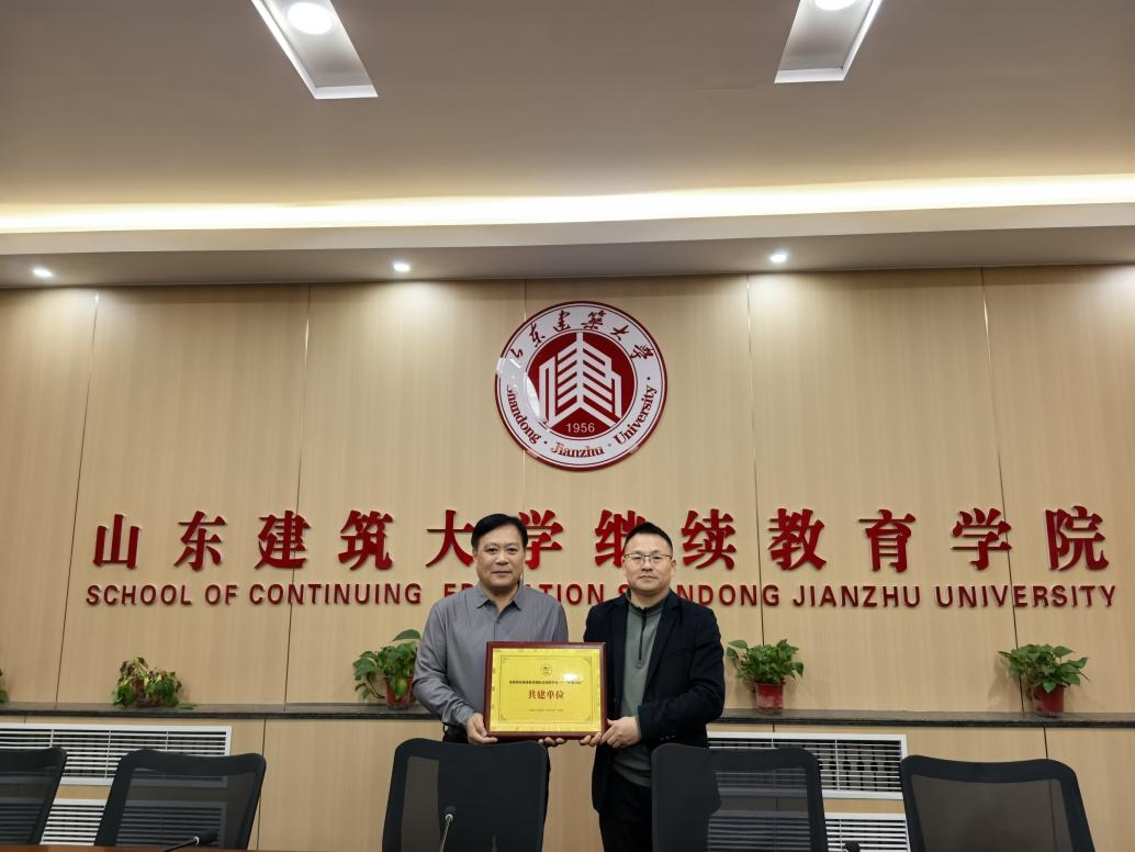 12月4日下午,中国成人教育协会高等院校继续教育发展专委会副秘书长曹建锋、新东方国际教育集团总部全国渠道负责人张随一行五人访问山东建筑大学继续教育学院,就非学历国际化培训项目及高校国际化转型工作展开专题调研座谈,并为继续教育学院颁发高等院校继续教育国际化赋能平台——“护航计划”共建单位证书。