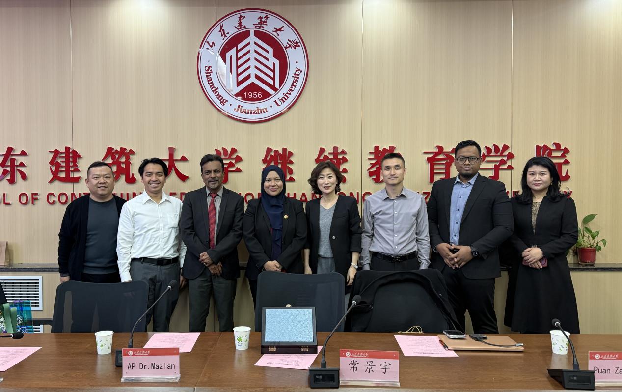 2025年12月9日,马来西亚理工大学SPACE学院首席执行官、副教授马兹兰(Mazlan Bin Mohamad Abdul Hamed)博士及夫人罗基亚(Puan Rokiah)女士,和马来西亚国立大学资源转换中心附属YF公司首席执行官、副教授米赞(Shahrul Mizan Bin Ismail)博士一行七人访问山东建筑大学。山东建筑大学继续教育学院学术副院长、留学服务中心主任丁静热情接待了来访嘉宾,双方围绕多个合作项目进行了深入交流。