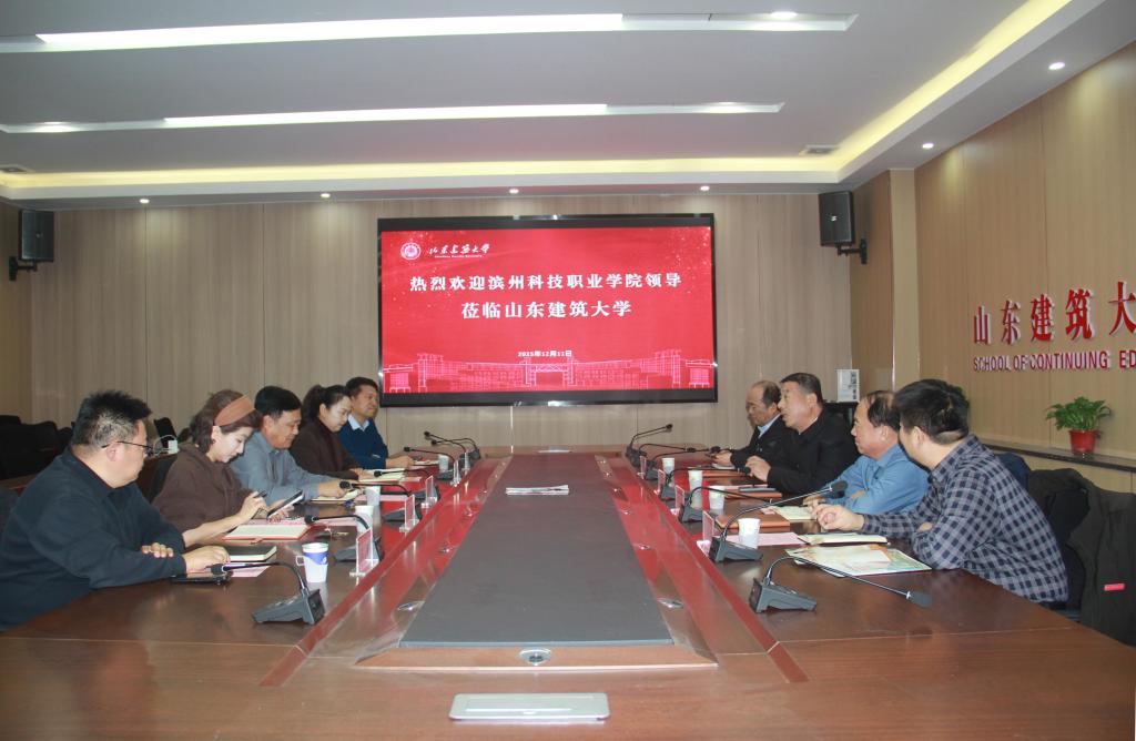 滨州科技职业学院继续教育学院相关负责同志,我校党委办公室(校长办公室)、继续教育学院、山东建大教育发展有限公司负责同志参加座谈。