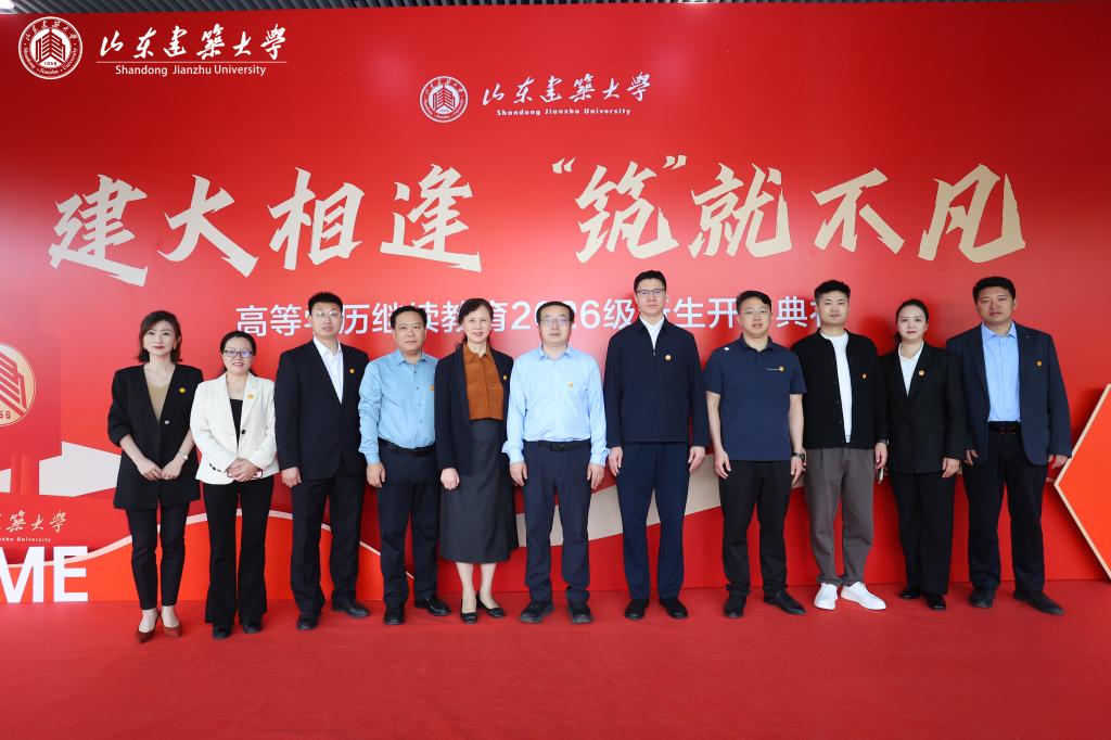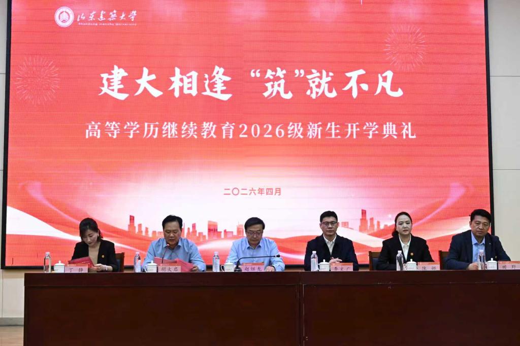 4月19日上午,山东建筑大学高等学历继续教育2026级新生开学典礼在博学会堂隆重举行。山东建筑大学副校长赵继龙,合作发展办公室主任李文广,继续教育学院领导班子及全体教职工、校外教学点代表、师生代表共计260余人共同参加典礼。典礼由继续教育学院直属党支部书记兼院长胡大启主持。