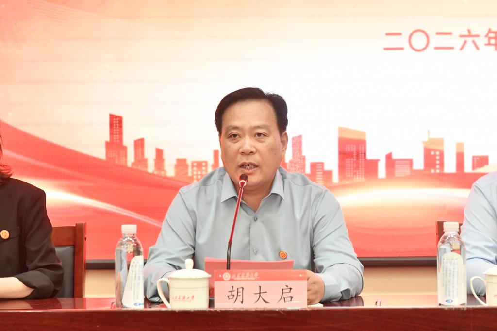 赵继龙代表学校向全体2026级新同学表示热烈欢迎,向长期支持学校继续教育事业的各教学点、合作单位及教职工致以诚挚感谢。他回顾了学校70年办学底蕴与学科优势,介绍了继续教育办学成果与“建大品牌”影响力,并对新生提出三点希望:坚定理想信念,筑牢思想根基;勤学善思笃行,锤炼过硬本领;砥砺品格操守,彰显建大风采。他勉励同学们牢记“厚德博学、筑基建业”校训,平衡工作、生活与学习,以终身学习成就不凡人生。